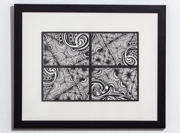 All is Well is one of eight 2" x 2" original pieces of Zentangle inspired art created with pen and ink and a touch of clear gel glitter pen. Incorporating words into my patterned pieces is a new form of self expression.